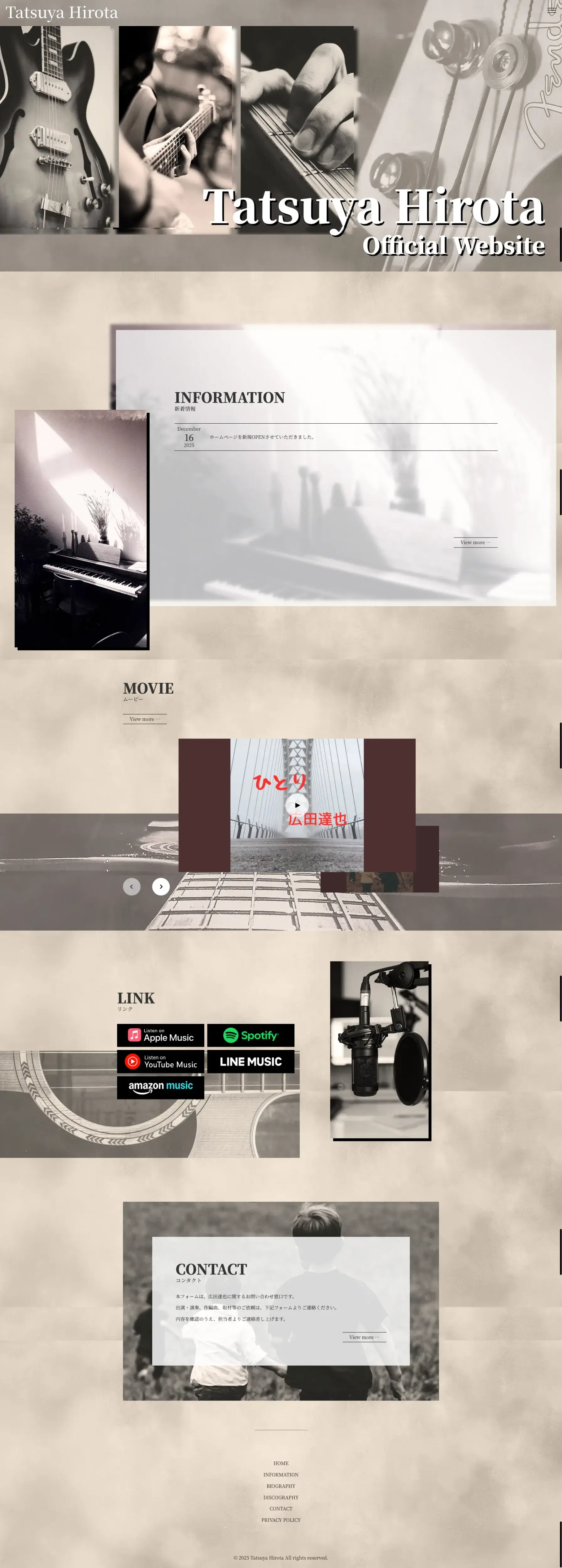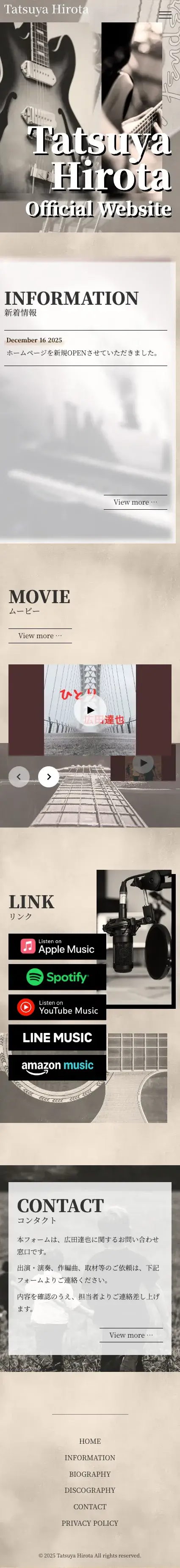 ポートフォリオ・プロフィールサイト パソコン表示 スマホ表示 広田 達也 様 URL https://hirota-tatsuya.com/ 種別 ポートフォリオ・プロフィールサイト 業種 アーティスト 導入サービス ディレクション, コーディング, CMS構築, 管理サポートプラン 一覧へ